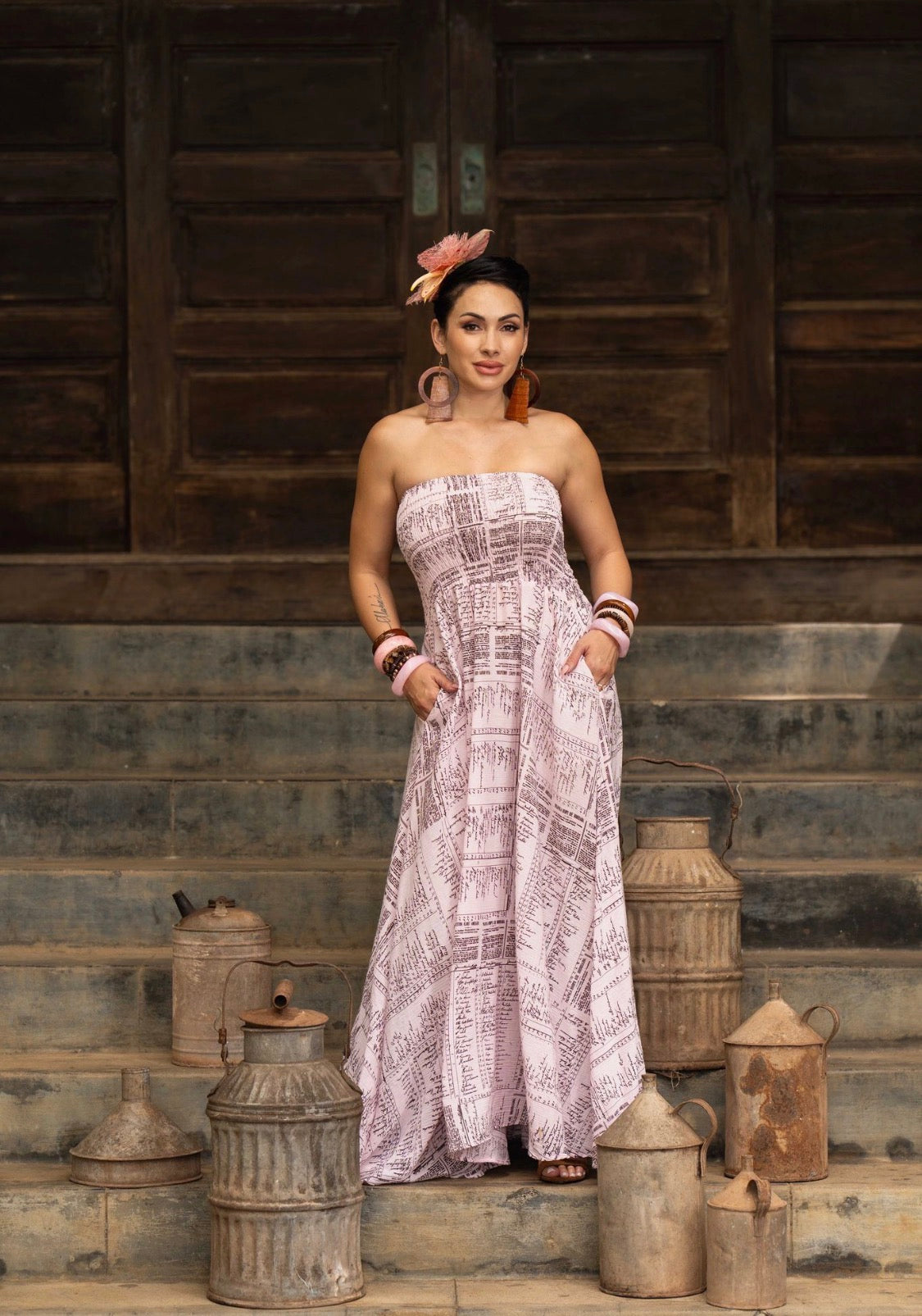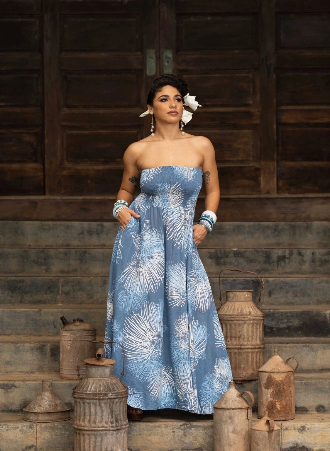 Effortlessly romantic this dress features a smocked, short dress with a strapless bodice that hugs comfortably while offering stretch and structure.